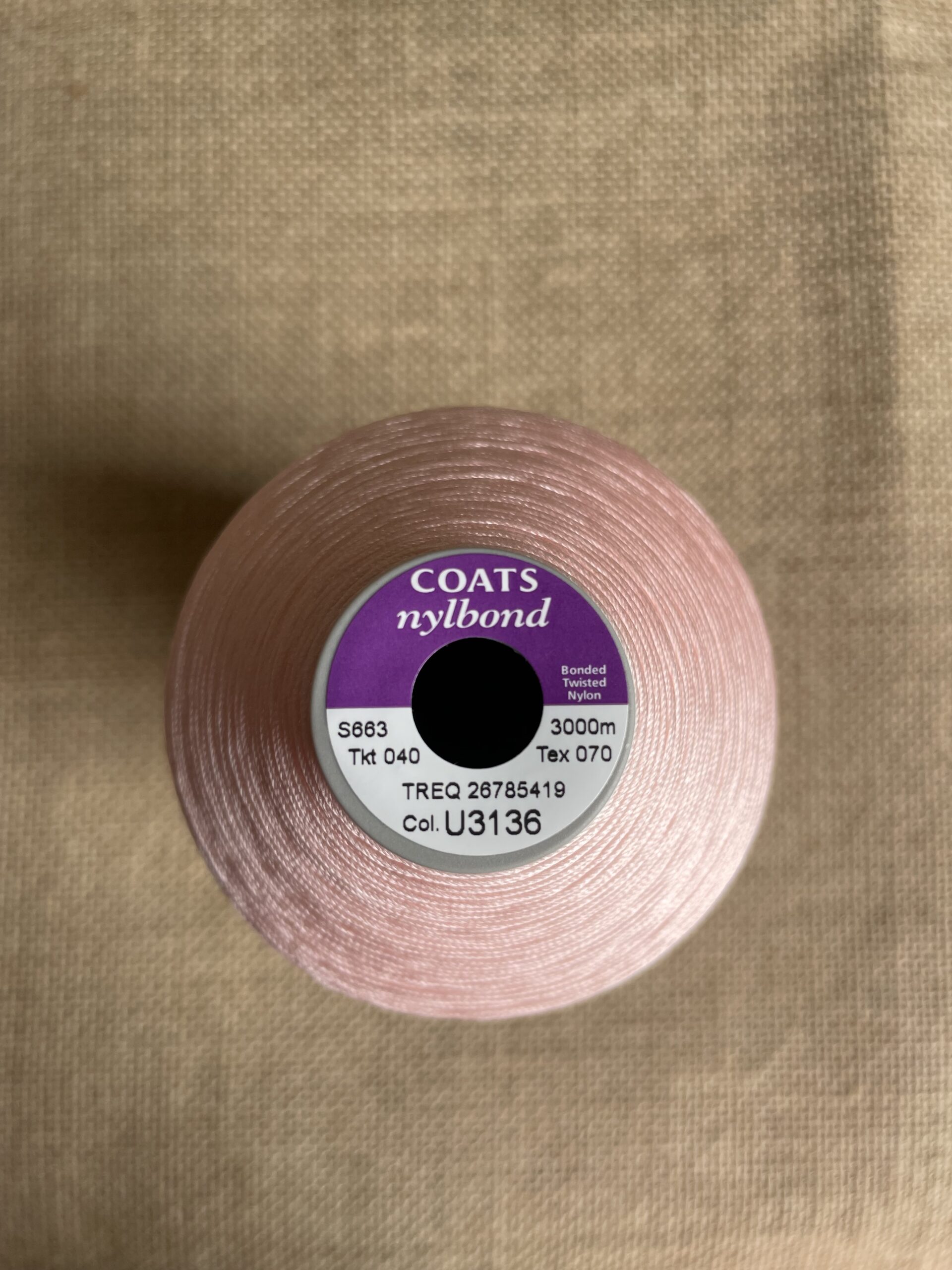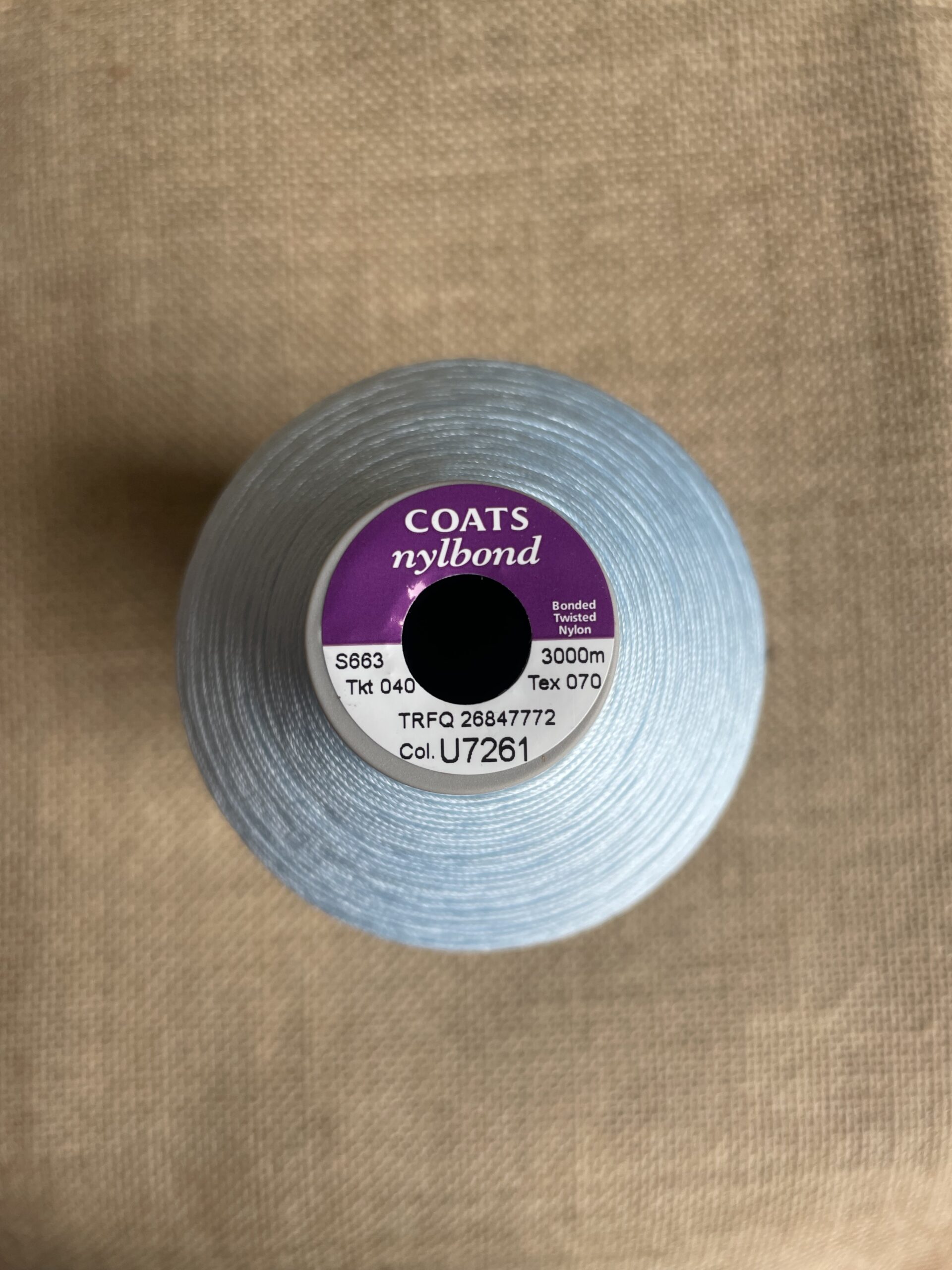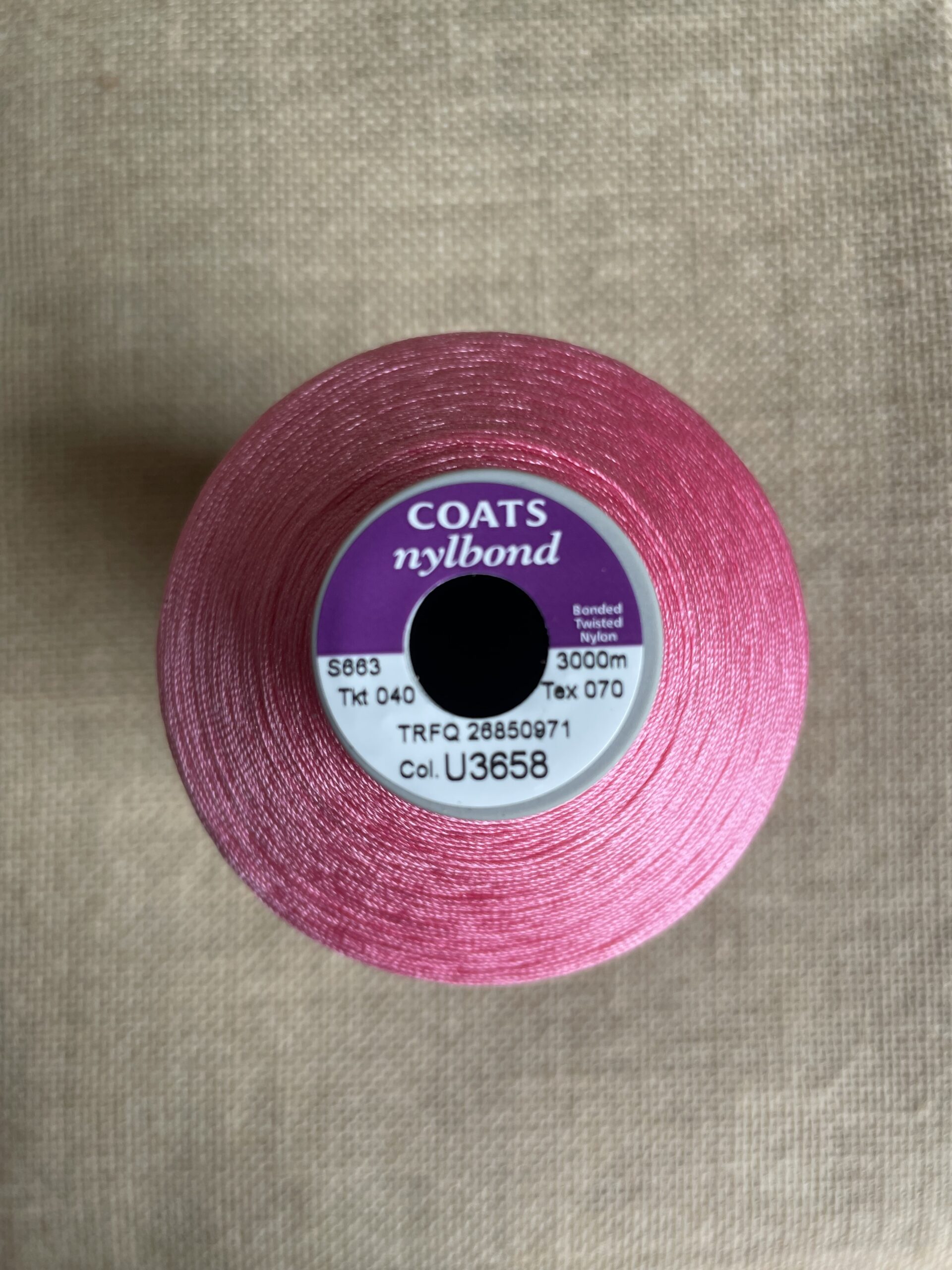 Heavy gauge bonded upholstery thread for sewing machines.